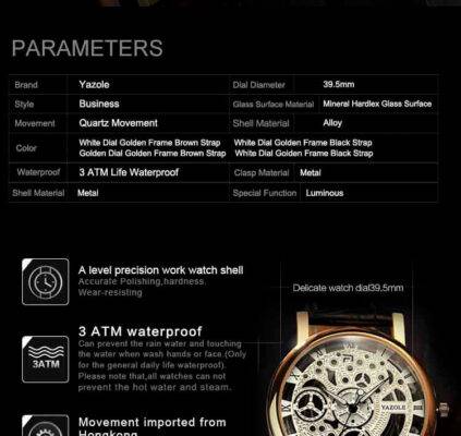 The Avalon watch by Yazole brings mechanical elegance to your wrist, combining style and functionality. With its sleek design, it offers the look of a classic timepiece. Each purchase comes with a premium watch box and an extra battery, ensuring you’re always prepared for every moment.